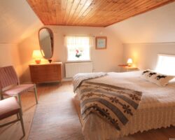 Im Obergeschoss des Ferienhauses befinden sich eine gemütliche Leseecke mit Sesseln sowie Zugang zum zweiten Wohnbereich mit Sofa und SAT-TV und ein separate Schlafzimmer mit Doppelbett.
